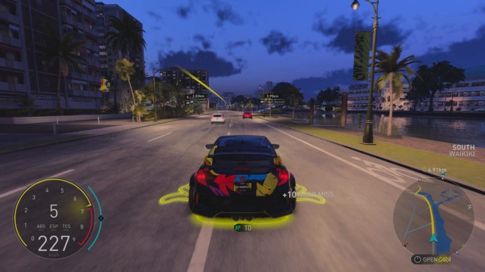 Der Sound der Autos lässt das Herz jedes Autofans schmelzen wie Reifengummi auf der Rennstrecke. Die Motoren der Muscle Cars brechen regelrecht durch die Motorhaube während getunte Racing Cars schnurren wie man es sonst nur bei Formel 1 Rennen hört. Die musikalische Auswahl deckt ebenfalls jeden Geschmack ab. Von rockigen Nummern über EDM bis hin zur entspannenden Chilloutmusic ist alles dabei um eurer Tour den richtigen Soundtrack zu verpassen. Neben einer KI-Stimme, die euch Anweisungen gibt oder sagt wann wieder eine neue Playlist vorhanden ist, bekommt ihr von NPC’s gelegentlich Geschichtsunterricht. Sie erzählen euch alles über die Legenden der hawaiianischen Kultur oder aber die Entstehung des Driftens in Japan. Ich persönliche habe es geliebt, all diese Informationen während der Rennen aufzusaugen.