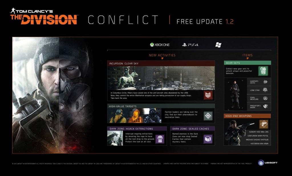 Neue Aktivitäten und Gegenstände erwarten die Spieler – Ubisoft gab bekannt, dass das zweite kostenlose Update Konflikt für Tom Clancy’s The Division am 24. Mai erscheint.