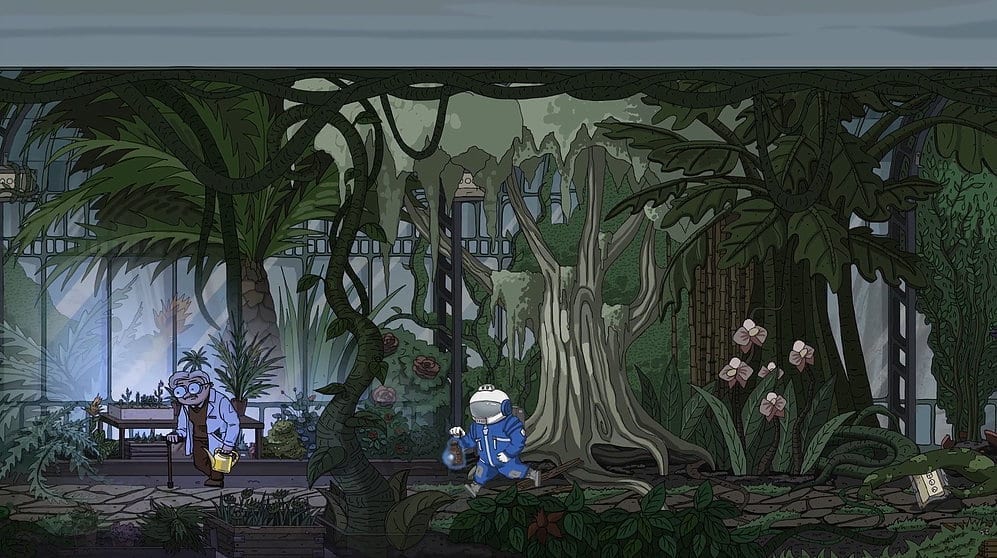 Hat man nach dem Starten des Spiels die Einleitungssequenz überstanden, springt man direkt ins Spielgeschehen – wobei Spielgeschehen sehr großzügig formuliert ist. The Great Perhaps ist nämlich ein Puzzle-Adventure, welches großen Wert auf die Narrative legt – ganz wie auch viele andere Projekte von Publisher Daedalic Entertainment. Das schließt natürlich unterhaltsames Gameplay nicht aus, trotzdem haben Adventure-Games selten viel Tiefgang, was diesen Aspekt betrifft.