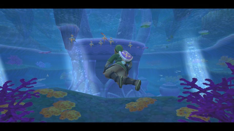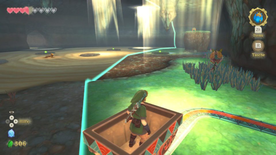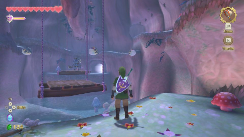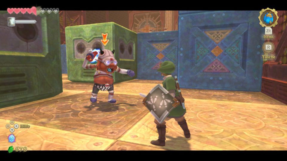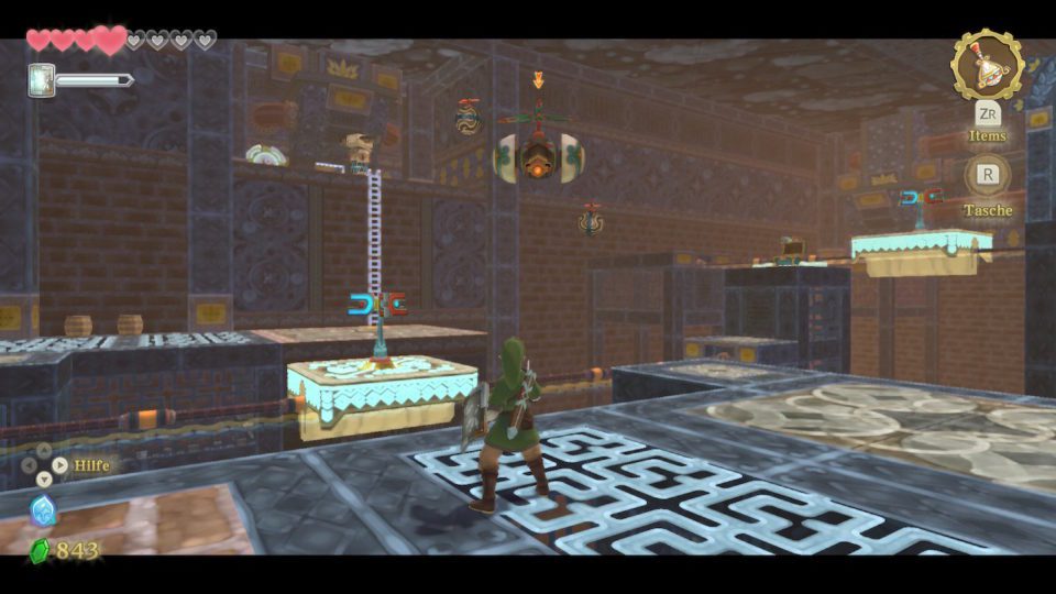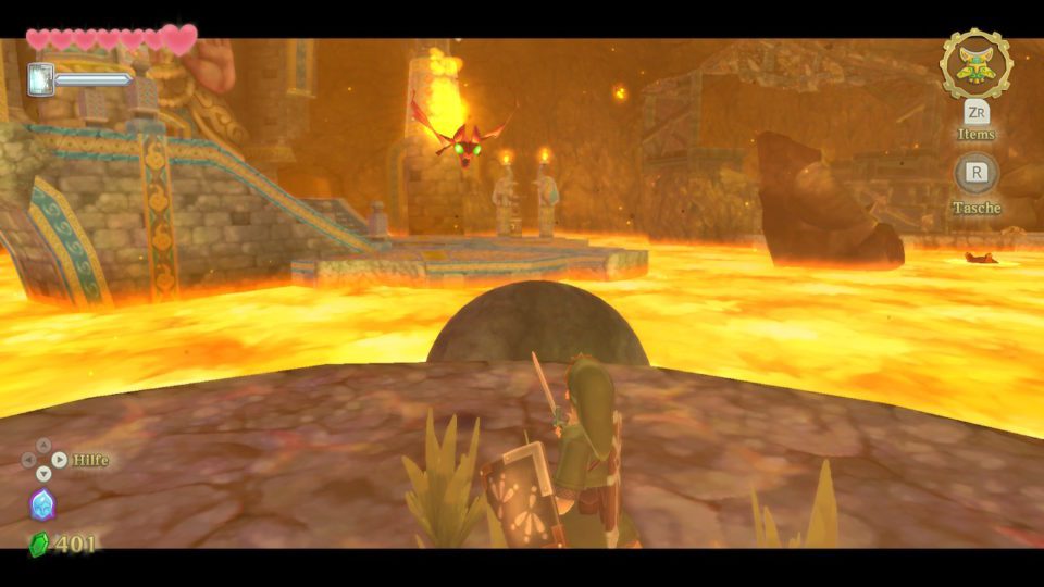 Ansonsten ist The Legend of Zelda: Skyward Sword HD ein Zelda-Titel, wie man ihn kennt und liebt. Mit Schwert und Schild erwehrt man sich seiner Gegner, hüpft, rennt und klettert durch die Gegend und sammelt Rubine, bis die Geldbörse platzt. Tränke füllen im Notfall Herzen oder Ausdauer auf und unterschiedliche Ausrüstungsgegenstände können gegen Gegner und/oder zum Lösen von Rätseln verwendet werden. Bomben, Steinschleuder und Co. sind hier alte Bekannte. Andere Gegenstände wie die Peitsche (Ziehen von Schaltern aus der Ferne und zum Schwingen über Abgründe) und der magische Krug (produziert starken Wind – effektiv zur Reinigung und dem Wegpusten von Gegnern) kennen manche bereits auf diversen 2D-Zeldas. Wirklich neu sind hingegen die Grabklauen und der (Greif)käfer. Mit den Grabklauen kann man an bestimmten Stellen nach Schätzen graben und einmal zu Mogma-Klauen aufgewertet, kann sich Link selbst durch die Erde graben.