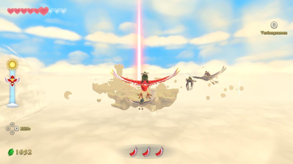 In diesem Zusammenhang stößt es etwas sauer auf, dass ein komplett neues Feature nur Besitzern einer ganz bestimmten amiibo-Figur zugänglich gemacht wird. Nur wer die (übrigens auch einzige) parallel zum Spiel erschienene Doppelfigur „Zelda & Wolkenvogel“ sein Eigen nennt, darf nämlich jederzeit auf ein spezielles Schnellreise-Feature zugreifen: Phai rufen, amiibo scannen und man kann sich direkt zurück ins Wolkenreich teleportieren lassen – soweit also noch recht ähnlich zu den halbwegs großzügig verteilten Speicherpunkten, die einen ebenfalls zurück über die Wolken reisen lassen. Hat man in Wolkenhort und Co. aber seine Geschäfte erledigt, Tränke aufgestockt, Schilde repariert usw. kann man sich durch einen erneuten Scan des amiibos wieder an den Ausgangspunkt zurückbeamen lassen. Normalsterbliche müssen da erst vom Wolkenhort springen, zum entsprechenden Loch in der Wolkendecke fliegen und dann von einer (hoffentlich) nahe gelegenen Vogelstatue den Rest des Weges laufen. So ein wichtiges Feature ist mit den sonst üblichen kleinen amiibo-Belohnungen nicht vergleichbar und Nichtbesitzern der konkreten Figur entsteht ein effektiver Nachteil. Entsprechend ist Unmut darüber auch durchaus verständlich.