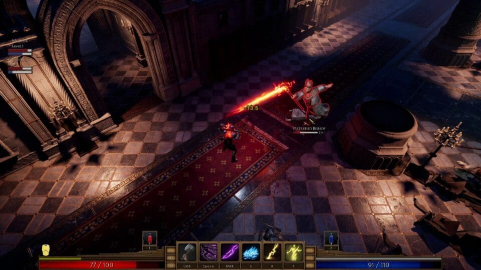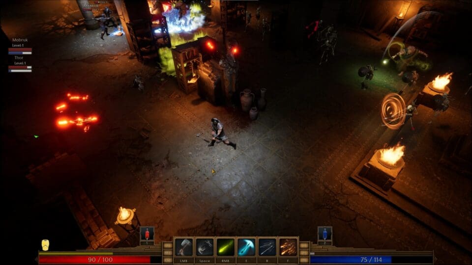 Die Hintergrundgeschichte ist schnell erzählt – es gibt nämlich aktuell keine. Zumindest nicht zu Beginn im Spiel selbst. Angeblich wirft euch Varthos in den Kampf um die Thronfolge – überlebt und ihr werdet der neue Herrscher? Keine Ahnung. Hier wollen die Entwickler aber nachbessern und zumindest ein wenig Storyelemente hinzufügen. Ebenso wie ein Tutorial, das gibt es nämlich aktuell auch nicht. Die Basisinfos werden aber über Textblasen erklärt, falls jemand noch nie einen Diablo-Klon gespielt hat. Ein erweitertes Tutorial soll aber auch noch kommen.