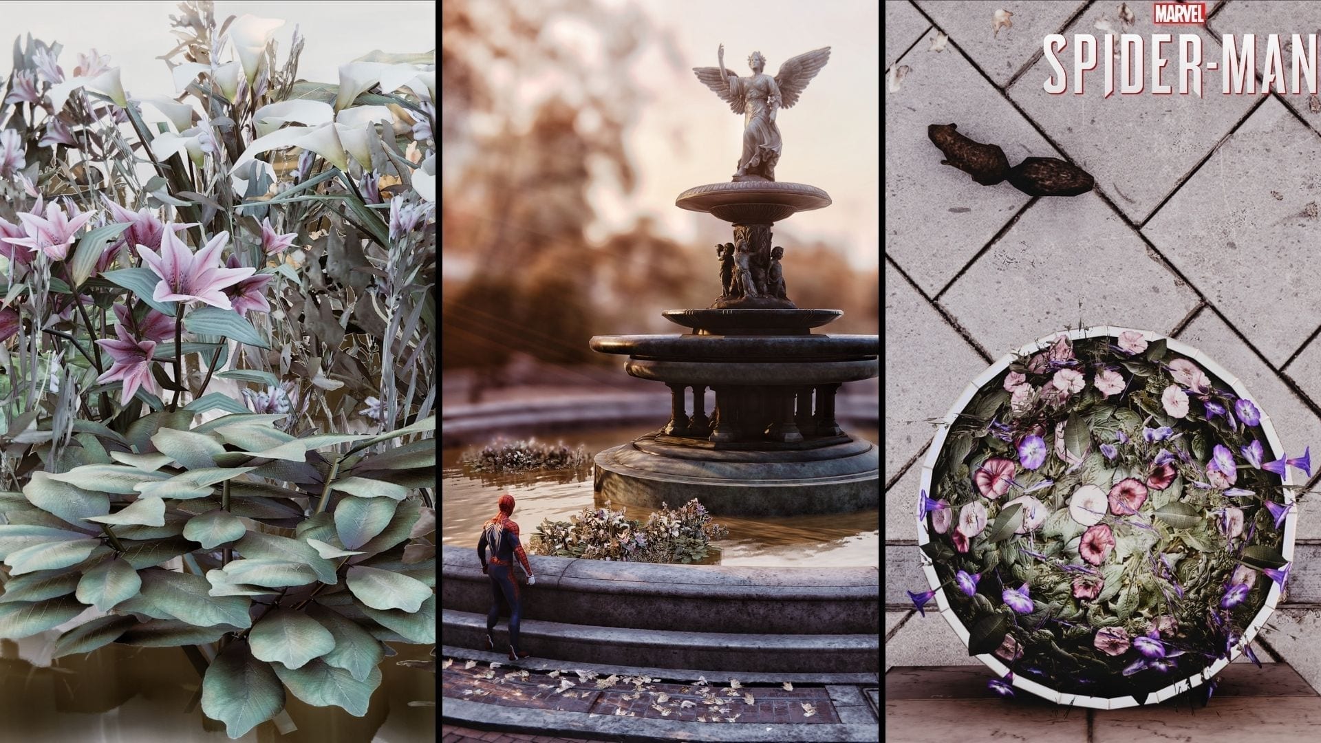 Auch in Spielen, deren Story primär in Städten angesiedelt ist, dürfen ein paar grüne oder bunte Naturflecken nicht fehlen. Ich war überrascht, als ich in Marvel’s Spider-Man beim Schwingen durch New York die zahlreichen Dachgärten, Blumentöpfe oder Blumenschmuck gesehen habe. Auch in Cyberpunk‘s Night City verstecken sich ein paar grüne Flecken, die der Seele in dieser tristen Stadt guttun. Dank der Fotomodi in Spielen lassen sich die blumigen Grüße perfekt einfangen und die Vegetation in Videospielen einmal näher betrachten.