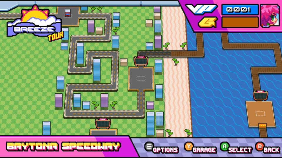 Spannende Mehrspielerrennen sind über Split-Screen möglich. Egal, ob ihr zu zweit, dritt oder viert auf der Couch sitzt – mit genügend Gamepads könnt ihr gegeneinander antreten. Online geht das auch, und zwar mit Hilfe von Steam Remote Play Together. Es reicht also, wenn ihr eine Kopie des Spieles habt, eure Freunde können dann über euren auf ihren Monitor gespiegelten Bildschirm mitspielen. Gamepad brauchen sie aber ihr eigenes. Einen „richtigen“ Online Modus, bei dem jeder das Spiel direkt auf seinem Rechner startet, bietet Victory Heat Rally jedoch nicht. Neue Rennstrecken müssen erst freigeschalten werden.