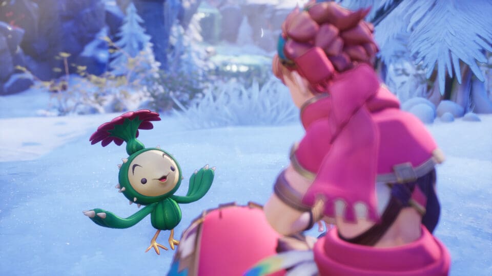 Die Welt ist wirklich sehr schön gestaltet, quietschbunt, aber eben schön. Wir können alles frei erkunden und finden, so nicht nur jede Menge Sammelkram, sondern auch einige Nebenmissionen. Deren Aufgabe ist es zwar meistens, Dinge zu finden oder Gegner zu besiegen, aber was solls, müssen wir ja nicht machen, wenn wir nicht wollen. Die Areale sind auch recht unterschiedlich. Ob Wüste oder kalte Schneegefilde: Ihr kommt schon ordentlich rum in Visions of Mana.