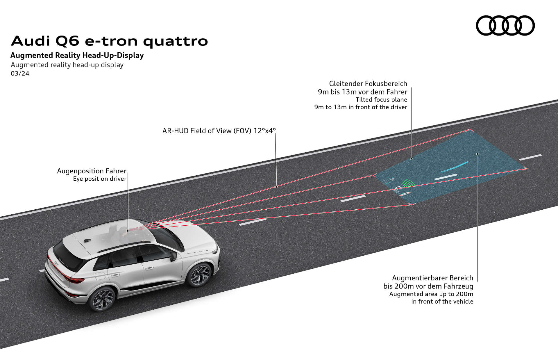 Ein weiteres Highlight ist das (optionale) Augmented Reality Head-up-Display, welches in der Windschutzscheibe relevante Informationen wie beispielsweise Geschwindigkeit, Verkehrszeichen, Assistenz- und Navigationssymbole anzeigt. In einem Bereich von bis zu 200 Meter Entfernung können so nahtlos virtuelle Inhalte in die reale Welt projiziert werden.