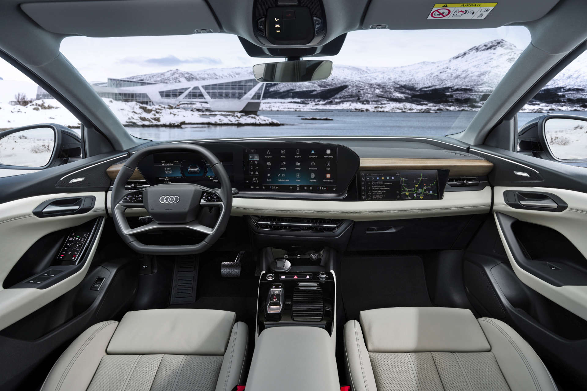 Aber auch im Inneren des Fahrzeugs wird nicht gekleckert, sondern geklotzt. So wurde dem Fahrer ein geschwungenes Audi MMI Panoramadisplay spendiert, ausgeführt als OLED-Bildschirm mit dem 11,9 Zoll großen Audi virtual cockpit und dem 14,5 Zoll großen MMI Touchdisplay. Aber auch der Beifahrer hat sein eigenes 11,9 Zoll großes MMI Beifahrerdisplay bekommen und kann selbst Filme schauen oder den Fahrer z.B. mit der Navigation unterstützen.