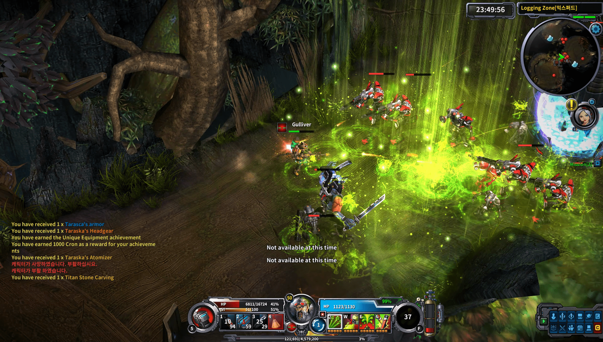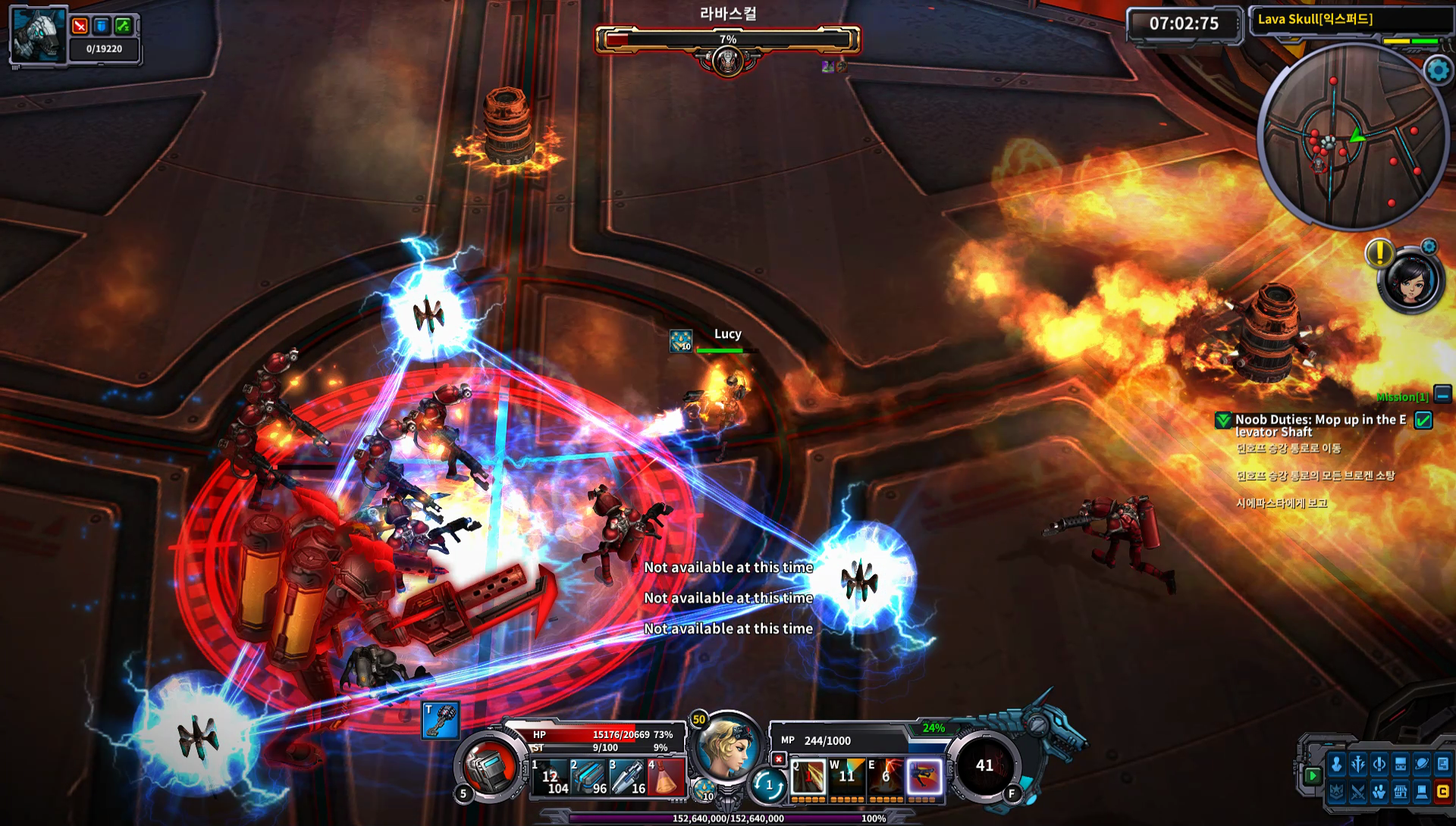 Aktuell gibt es drei Schwierigkeitsgrade die durchgelevelt werden wollen, damit unser Held die Maximalstufe 50 erreicht. Der Levelprozess funktioniert bei Wild Buster: Heroes of Titan wie in einem handelsüblichen MMO, nämlich durch Quests. Durch stinklangweilige, eins zu eins kopierte, repetitive Quests. Der Ablauf ist immer derselbe. Zwei oder drei Questgeber schicken uns in das nächste Gebiet, um dort den Endboss und eine gewisse Anzahl an Feinden zu töten. Dorthin teleportiert man sich, prescht durch mehr oder weniger dieselben Level mit unterschiedlichen 2D-Hintergründen, besiegt den Obermotz, erhält seinen Loot und gibt die Aufgabe ab. Dieser Verlauf wiederholt sich ca. 8 Stunden lang bis die Endstufe erreicht wurde. Kein Wunder, dass das Spiel zuerst in Korea eine Open Beta absolviert hat und jetzt für den europäischen Markt angepasst werden soll. Einsteins Definition von Wahnsinn kommt einem während des Fortschritts dennoch öfter mal in den Sinn.